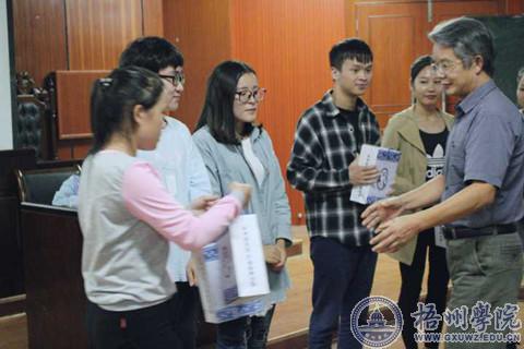 本次活动共有7个环节,内容丰富,形式多样。在“自我反省”环节上,主持人向同学们提出“有没有在同学遇到困难的时候主动提出帮助?”、“有没有在某件事情上同家长、老师和同学说过谎?”、“有没有在大学交到至真至诚的朋友?"三个有关于帮助他人的问题。带着这三个问题,进入 “唱歌曲”环节,大家一起合唱了一首弘扬道德、歌颂好人的歌曲——《爱就在身边》。在“诵经典”的环节,同学们一起感受与诵读了中华民族优秀传统文化经典《道德经》与《诗经》中的诗句。在“学模范讲故事”环节,大家一起聆听了“化缘爸爸”——《莫振高的故事》,观看了莫校长一心只为学生的许多感人事迹。在“讲故事,谈感悟”环节上,四位道德模范宣讲人常慧雷、徐露民、刘奕君、黄月春,分享了他们在帮助他人与自我成长道路上的小故事与感悟。最后,由莫世有书记为四位道德模范宣讲人颁发了一份吉祥的小礼物,并对本场活动进行了总结,莫书记表达了自己对道德的理解,并鼓励同学们多参与到实践活动中去,用自己的行动去践行道德的意义。