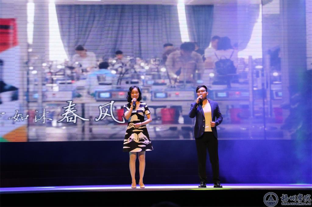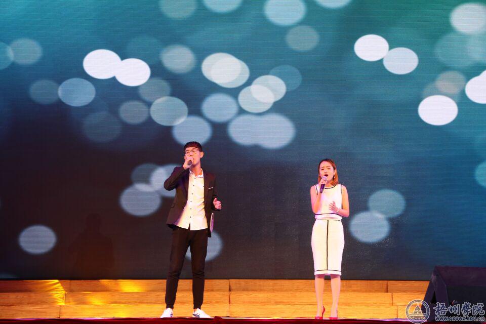 校友龚宪林的一首《记住你》表达了对教职工的崇高敬意。教师韦思宁、马纳与师范舞蹈队共同表演《珠山情,梧大梦》将晚会带进尾声,教师和同学们用歌声和舞蹈祝福梧州学院早日实现梧大梦。