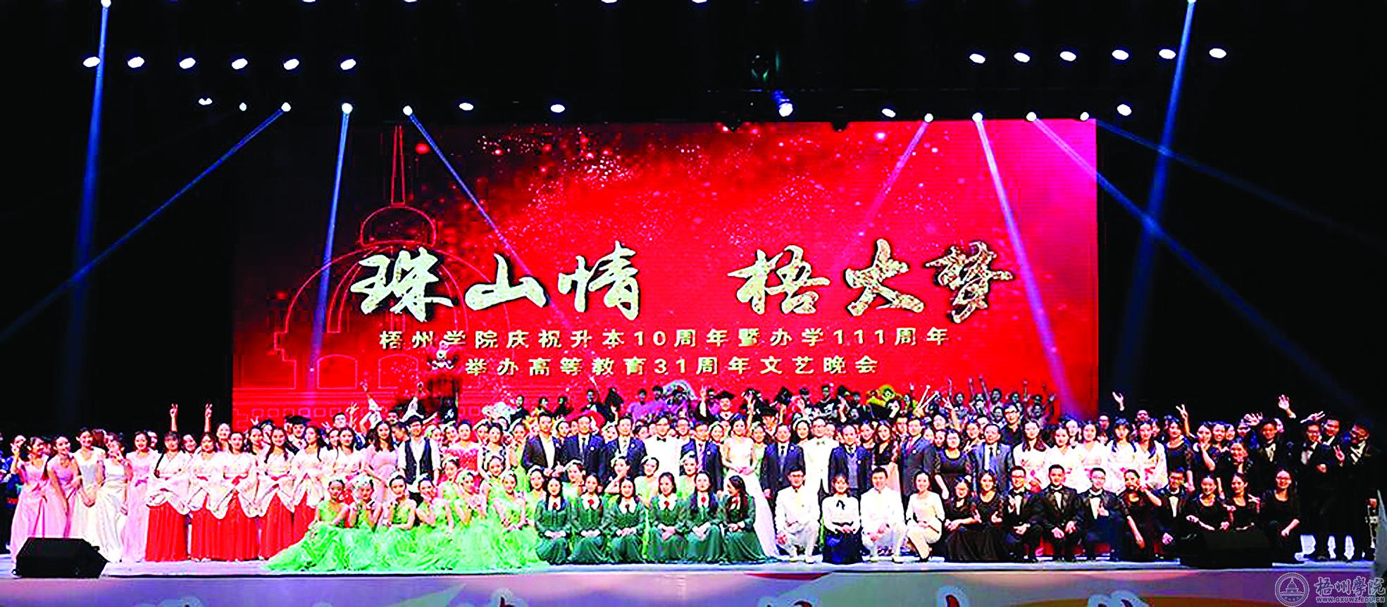 2016年12月9日起,我校举行升本10周年暨办学111周年、举办高等31周年校庆系列活动,这次的校庆活动包括校庆纪念大会,“珠山情,梧大梦”主题校庆文艺晚会、校友代表大会等。这一系列的校庆活动展示了我校在升本以来各个方面所取得的重大成就。
