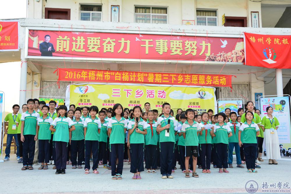 2017年我校“三下乡”活动共组建8支服务团队、近120名志愿者,开展了为期一周的志愿服务活动。此外,五年来我校共组织了40多支服务队共1200多人到梧州市、蒙山县、苍梧县、贵港市、桂林荔浦县等县市的社区乡镇、中小学,开展扶贫济困、服务新农村、普法宣传、爱心支教、关爱孤寡老人、关爱留守儿童等“三下乡”社会实践与志愿服务活动。其中有2支服务团入选全国重点团队、12支服务团入选全区重点团队,1支服务团被评为全国优秀团队。