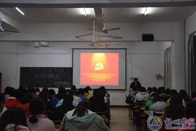 11月24日,中共梧州学院师范学院学生支部委员会第五期入党积极分子培训班举办了开班典礼。出席开班典礼的人员有师范学院党委副书记韩小平同志、师范学院学生党支部书记陈驰宇同志、师范学院学生党建服务中心成员以及参加第五期入党积极分子培训班的学员。