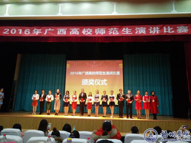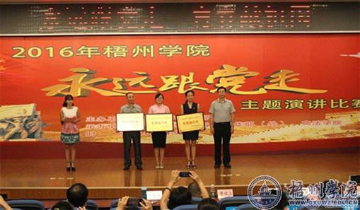 2016年9月在梧州学院“永远跟党走”演讲比赛中,师范学院罗叶琦获一等奖,师范学院得最佳组织奖。