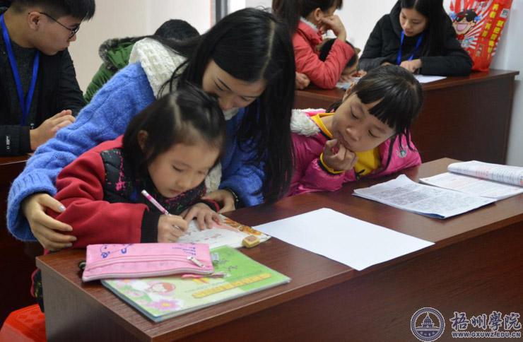 当天上午,志愿者们刚到达支教点,就看到了一张张天真可爱的笑脸,如寒冬中的暖风温暖人心。在学习过程中,孩子们十分投入,跟玩耍的时候完全是两个状态,他们不停的向这些大哥哥大姐姐提出学习中的问题。辅导室里充满着学习的氛围。