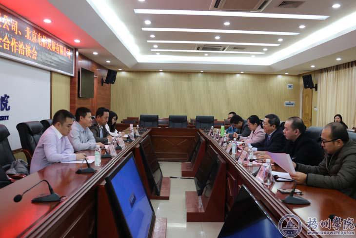 12月4日上午,中关村云科未来科技(北京)有限公司副总经理高利锋、北京电信发展有限公司副总经理侯建伟一行4人来校洽谈推进校企合作事宜。学校校长杨奔、副校长甘金明就进一步加强校企合作培养人才与客人在明理楼第一会议举行洽谈。教务处、信电学院有关领导及教师代表参加座谈会。甘金明副校长主持座谈会。