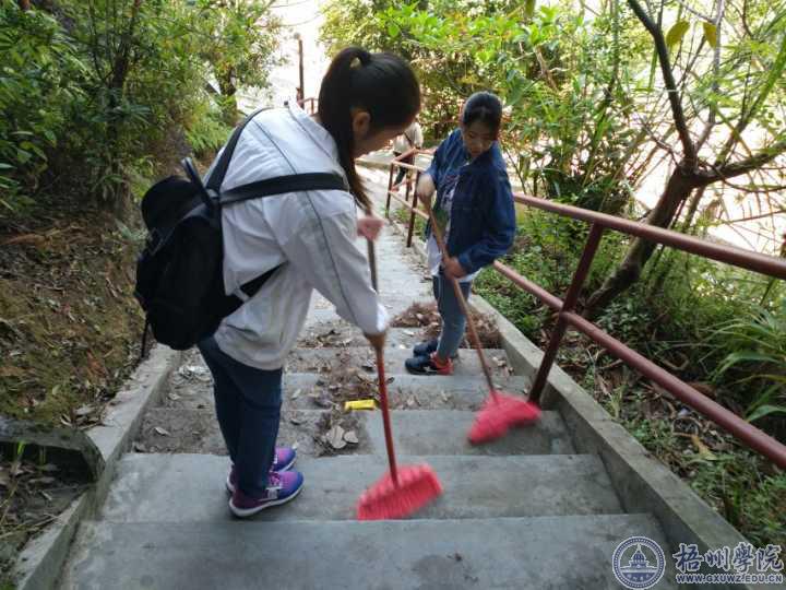 上午9点,迎着阳光,环协的152名同学自觉拿着扫帚、垃圾铲、除草铲等工具,分成6个小组分别到梧州学院北校区的各宿舍楼、图书馆、田径场等地进行打扫。此外,同学们对草坪、小广告、下水道也做了相应的清洁处理。