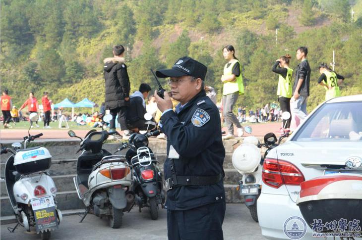 “维护校园秩序,预防校运会发生的各种突发性事件”保卫队副队长黄健斌说道,28年来的校运会一直保持着零起交通堵塞、人员拥挤踩踏事故的记录。这次运动会校卫队在A4路口、A11路口、A5路口、足球场路口、图书馆T字路口、会场中心、音响器材等地各设1到2名校卫队队员,维持校园秩序,处理乱停乱放问题等问题。