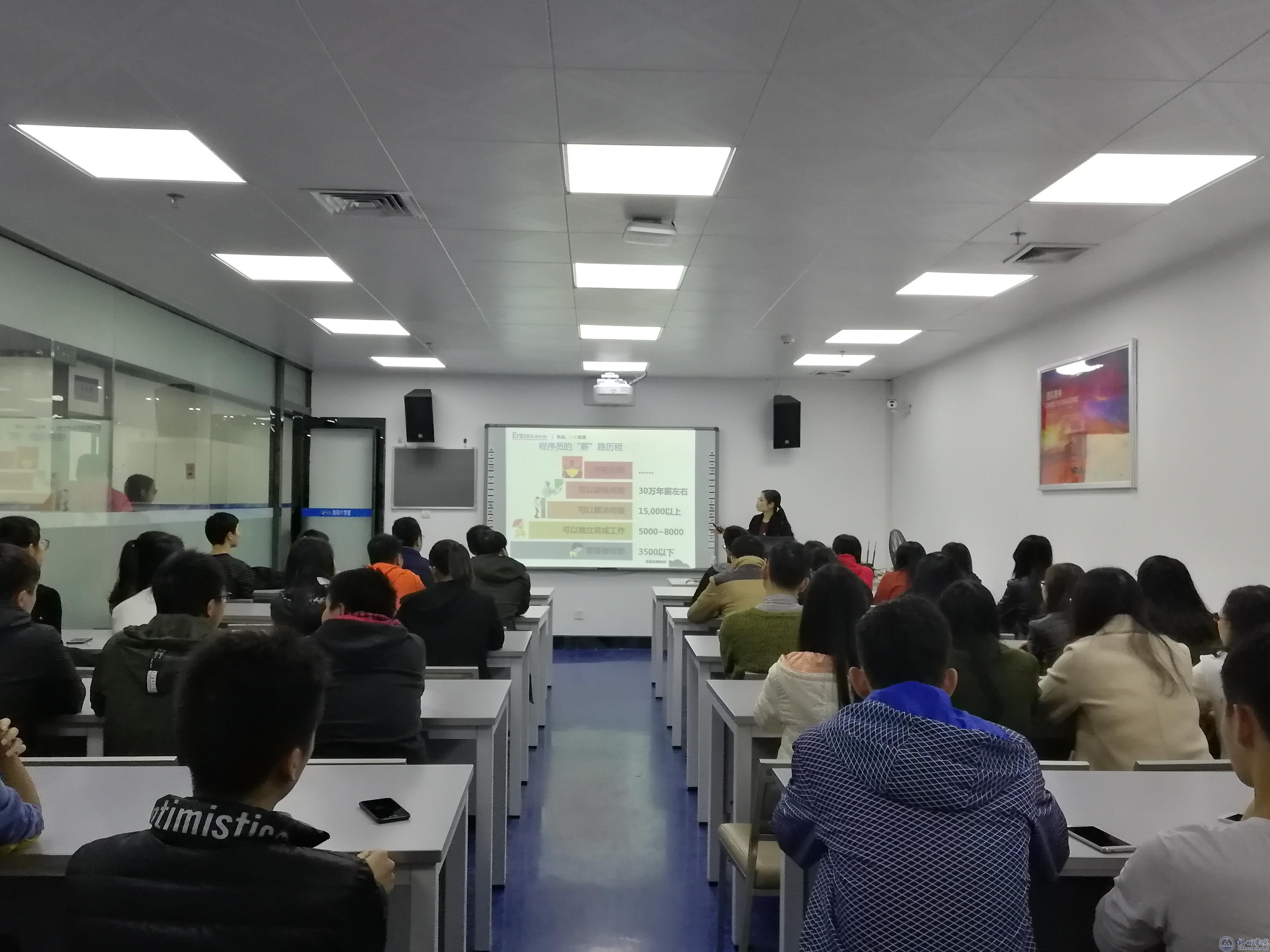 首先由南宁易唐科技有限公司的HR(人力资源)专业的王峰老师,介绍本次宣讲会的主要流程。然后王峰老师就公司背景、公司文化以及公司现状等为同学们做了详细介绍,并对软件行业的就业前景及软件行业需要掌握的技能进行了基本的分析和介绍。会上,王峰老师还就同学们提出的各种相关问题一一进行讲解,尤其是提到了UI的时候王老师用了小米手机、罗永浩创办的锤子公司以及华为公司的例子,让在座的同学们很受益。