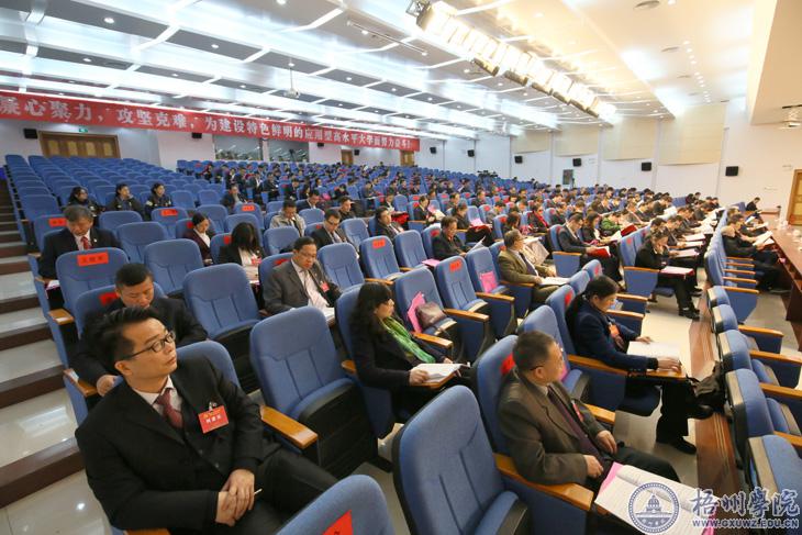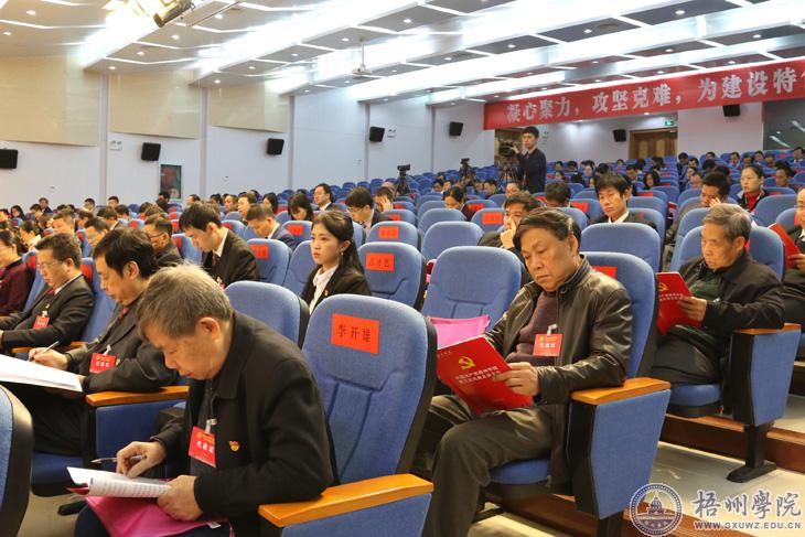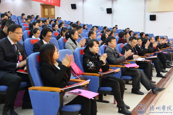 唐平秋同志代表中国共产党梧州学院第二届委员会向大会作了题为《凝心聚力 攻坚克难 为建设特色鲜明的应用型高水平大学而努力奋斗》报告;杨奔同志代表大会主席团致开幕词;曹迎同志主持开幕式。