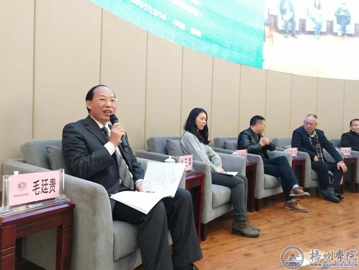 毛廷贵院长发言的题目是《构建珠江—西江生态文明旅游带 加快粤桂滇黔区域旅游协同发展》,毛廷贵认为珠江—西江经济带发展上升为国家战略为西江经济带全域旅游发展大业的快速发展带来了不可多得的机遇,应该抓住机遇、乘势而上,构建珠江—西江生态文明旅游带,打破行政区划的限制,加快发展粤桂滇黔区域旅游共同体,这容易得到国家的支持;另一方面“珠江—西江生态文明旅游带”以山青、水碧、花香、果鲜、动物多等为特色是一条中国生态最奇美的生态旅游带,以舜帝、龙母、牟子、六祖、契嵩、刘三姐、阿诗玛等宗教和民俗为丰富内涵的文明旅游带;还是连接众多少数民族的一条精准扶贫带,因此构建这条旅游带意义重大。为了加速这条旅游带的建设,毛廷贵副教授建议要加强学术界沟通、政府旅游部门的联动、政府和民间资金的参与。
