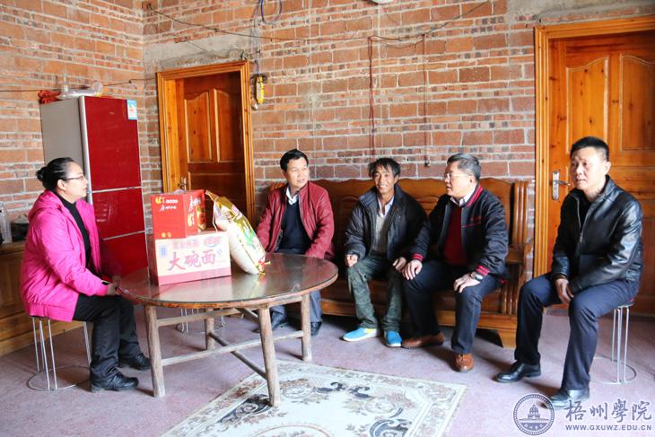 12月26日,杨奔校长带队到蒙山县汉豪乡白竹村看望精准扶贫对象,了解他们目前脱贫进展情况及其生活上的需求,为他们脱贫以及增收提供帮助。学校党委(校长)办公室主任李远林、党委宣传部部长陈健萍、财务处处长覃雄彪随同看望。