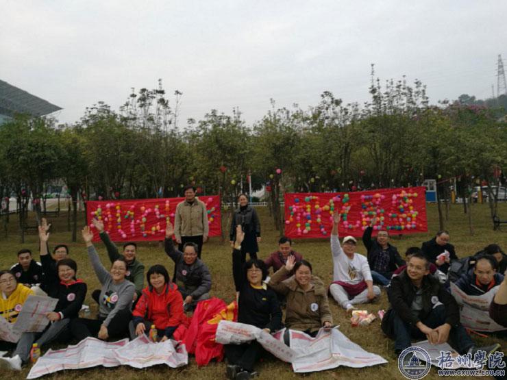 本次活动采用分组竞技形式,内容丰富多彩。其中,在《同心协力,谱写未来》项目中,按照游戏规则和指令,各组队员利用气球将“机化出彩”“机化昌盛”笔画补齐。全组人员拍好三张全家福,并最快上传到QQ群的胜出,各组队员齐心协力,顺利完成了比赛项目。在《硕果挂树等你收》项目中,队友们四人结伴,一人撑果树站中间,三人绕着红丝带将果树上的果实运到自己队的战利品果箱中,他们挥洒汗水,收获硕果。在《党代会知识竞赛》项目中,以“梧州学院第三次党代会报告精神”的知识点共28题开展抢答。队员们集坐一起,手捧党代会专题院报,共同进一步学习党代会精神,在学习中抢答,在抢答中深刻领会,在未来的十年凝心聚力,共同创造学院美好的未来。