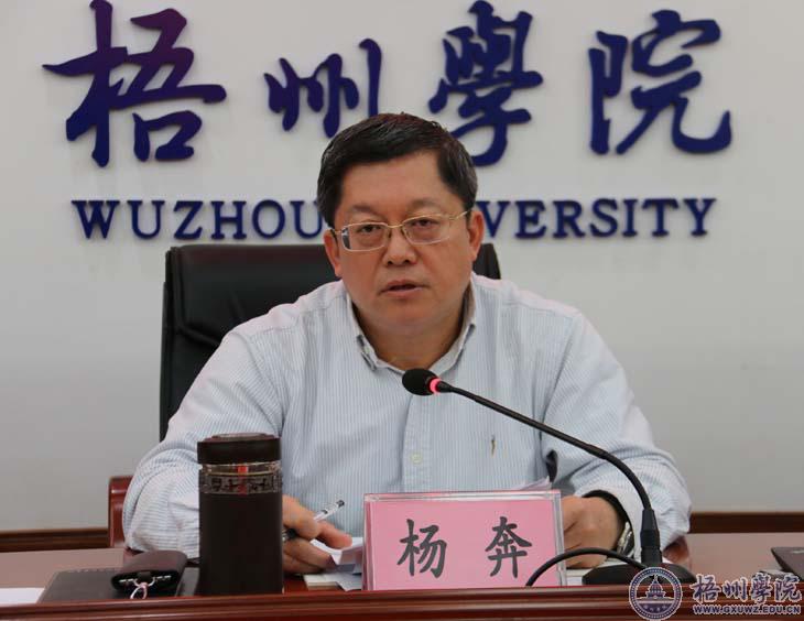 为做好我校2018年招生工作,杨奔提出六点要求:一、认清形势,高度重视招生工作。要将招生工作纳入年度重要工作进行统筹安排。二、加强学校内涵建设和办学质量的提升。要在师资建设、教学改革、基础设施建设等方面加强工作,为做好招生工作提供根本保障。三、密切关注、积极应对招生考试制度改革。要做好各级改革政策的学习、把握与贯彻执行,加强数据的统计、分析,在招生专业建设、选考科目设置、综合素质评价等方面提前做好应对预案,确保改革后招生及有关工作稳步促进与提高。四、科学制定招生计划方案。要根据学校实际和转型发展需求,科学制定好2018年各专业招生计划。五、继续加强和创新招生宣传模式。2018年要在原来有效的措施基础上,继续加强和创新招生宣传模式,重点宣传我校在全国、全区高校综合排名的上升、就业质量的提升、办学条件的改善等优势,吸引更多的考生和家长关注梧州学院、报考梧州学院。六、加强廉政风险防控意识。要把切实维护广大考生的合法权益作为招生工作的出发点和落脚点,严格排查我们在招生工作过程中的廉政风险点,严格执行“30个不得”招生工作禁令,切实采取有效措施,杜绝违法违规现象的发生。