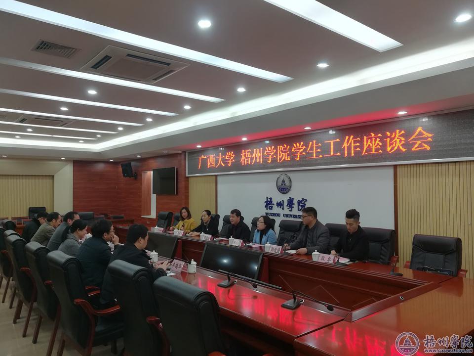 1月5日上午,广西大学学生工作部(处)部(处)长黄必春、校团委书记左向蕾一行六人到我校进行考察学习。我校学生工作部(处)部(处)长、校团委书记陈远武及学生工作部(处)、校团委相关成员,与黄必春一行在明理楼八楼第一会议室展开座谈对口交流。