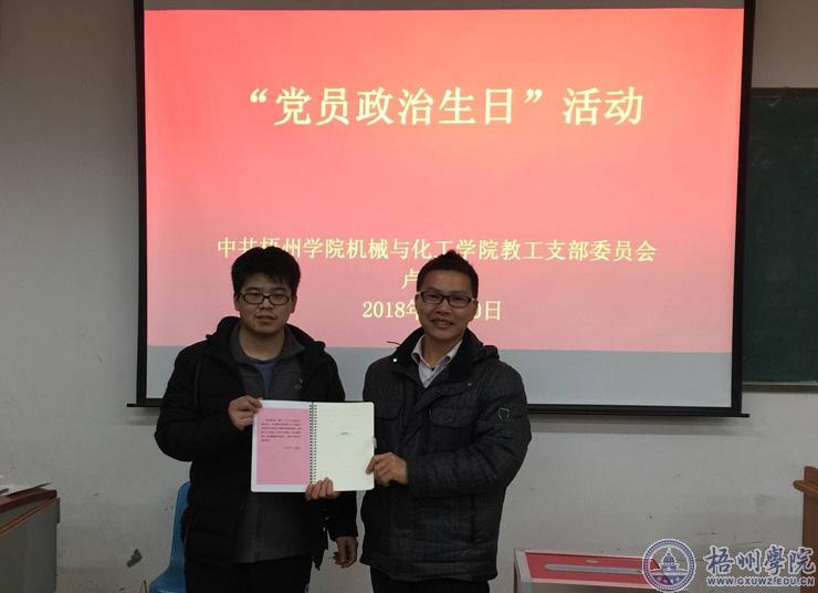 据了解,机械与化工学院教工党支部开展为党员过“政治生日”,计划每季度组织实施一次,达到“几名党员过生日,全体党员受教育”的效果。