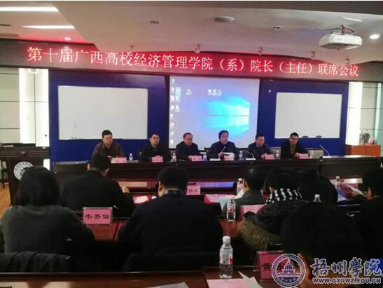 1月13日,第十届广西高校经济管理学院(系))院长(主任)联席会议在桂林电子科技大学召开。本次会议由桂林电子科技大学商学院承办,会议主题是:“双一流”建设背景下广西高校经管学院发展对策。来自广西各个本科院校的10多个经济管理学院(系)的领导们共聚一堂,围绕“双一流”建设背景下地方性本科院校的经济管理学院发展、特色培育、人才培养、实践教学改革创新等方面进行了深入探讨。我校经管学院杨西春副院长(主持工作)应邀参加了此次会议。