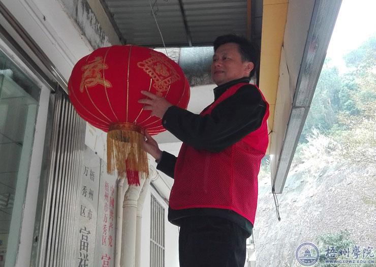 整洁活动结束后,机械与化工学院党委书记陈金辉还为社区悬挂红灯笼,营造喜庆的新年氛围。
