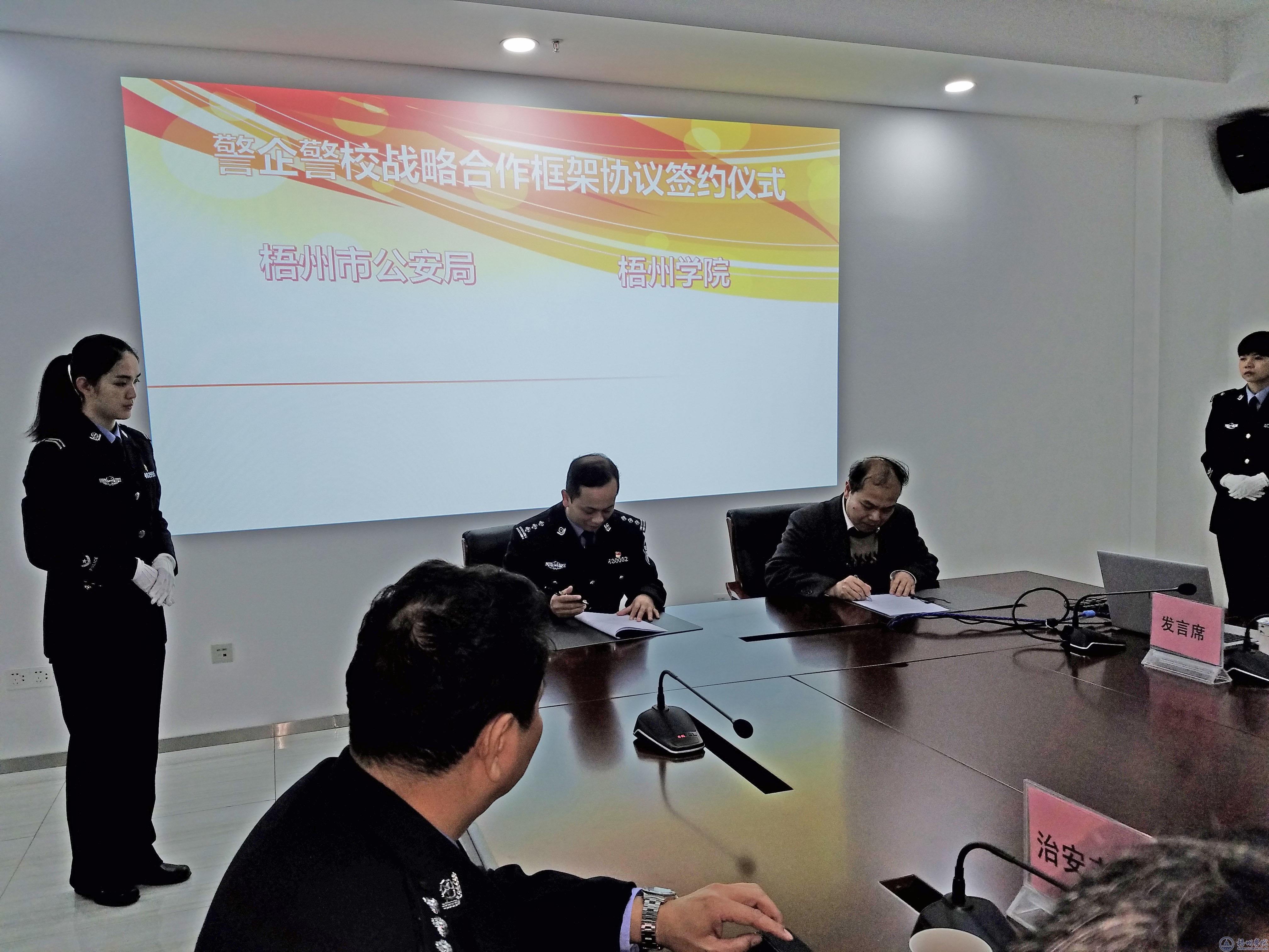 学校与梧州市公安局代表签订战略合作框架协议