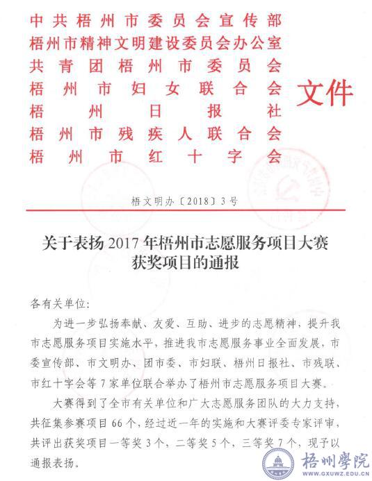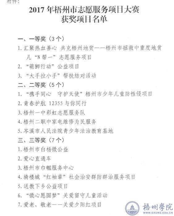 近日,从共青团梧州市委员会获悉,我校志愿服务项目“萌狮行动”荣获2017年梧州市志愿服务项目大赛一等奖。