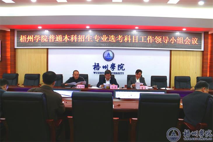 3月13日下午,学校在明理楼八楼议室召开梧州学院普通本科招生专业选考科目工作领导小组会议,本次专业选考科目编报工作是深入落实《国务院关于深化考试招生制度改革的实施意见》(国发〔2014〕35号),引导高校更加科学合理地对高考综合改革试点省份考生提出高中学业水平考试科目报考要求,更好地与《普通高等学校本科专业类教学质量国家标准》相衔接的重要举措。校长杨奔、学校党委副书记曹迎、副校长甘金明出席会议,学校招生工作领导小组成员参加了会议。