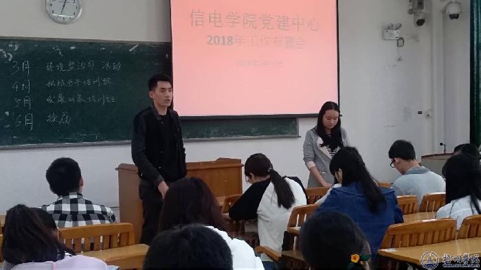 3月15日,信息与电子工程学院党建服务中心(以下简称党建中心)在明理楼S504召开新学期工作布置会。信电学院党委书记党委谭伟明、副书记吴燕端,辅导员周源老师、蔡敏仪以及党建中心全体成员参加会议。