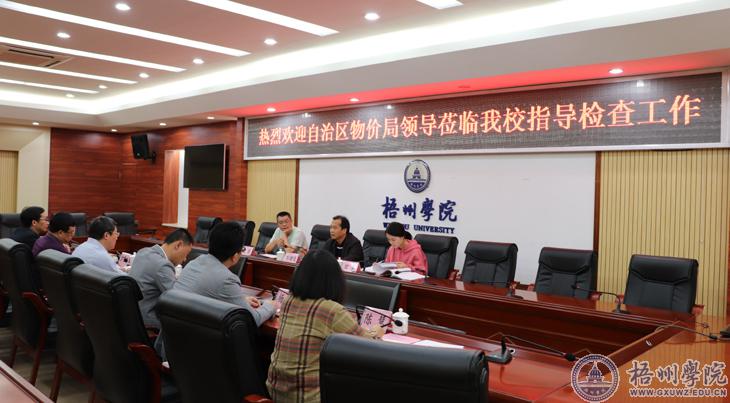 | 3月28日下午,以自治区价格监督检查分局副局长刘朝俊为组长的自治区物价局检查组到我校检查3A价格信用等级建设工作,并召开我校申报3A信用等级评定验收检查会议。学校校长杨奔,学生工作处、综合管理处、财务处等部门及有关科室负责人参加了汇报检查。会议由杨奔主持。