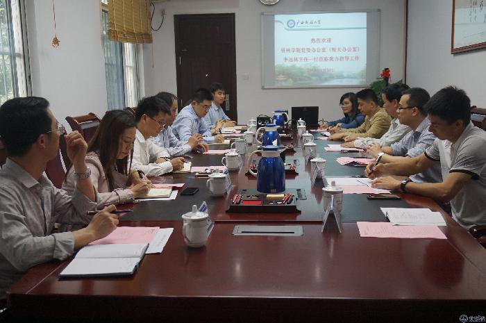 3月30日,我校党委办公室、校长办公室主任李远林一行6人赴广西大学、广西民族大学,就督查督办、校友会和基金会筹建、依法治校、办公信息化建设等工作展开学习交流活动。