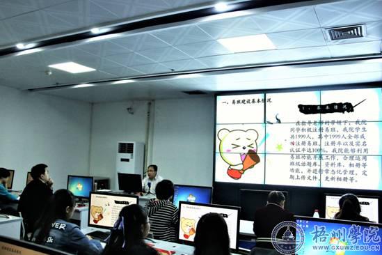 培训班上,校级易班学院学生工作站指导老师庄雨简要介绍易班的功能和学校易班建设的发展历程及建设成果。机化学院团委书记班华意以“利用虚拟空间,做好扎实文章”为主题做易班建设经验介绍。