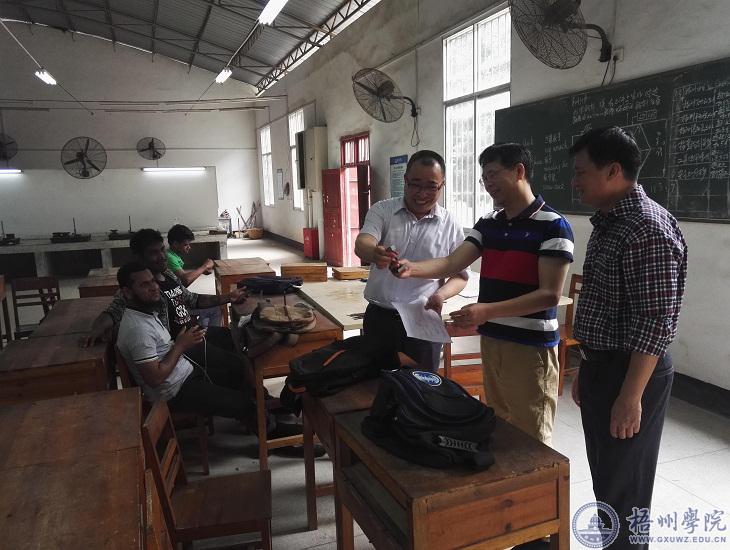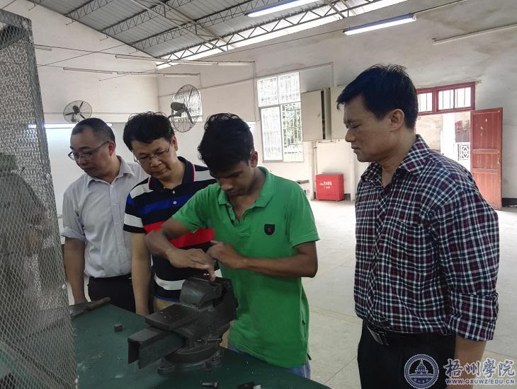 4月12日下午,机化学院陈金辉书记、钟山院长与有关老师看望了金工实习的留学生,并与留学生交流学习中遇到的问题。
