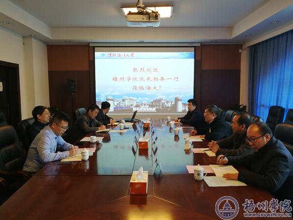 4月13日,杨奔校长带队到中国海洋大学、青岛科技大学考察学习。中国海洋大学副校长李巍然,青岛科技大学党委常委、副校长张淑华、陈克正会见了杨奔一行,并进行了交流座谈。副校长甘金明参加了考察学习。