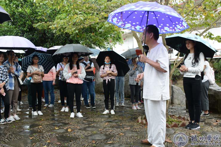 随后,师生们在茶船古道的起点合口码头聆听了“六堡茶非物质文化遗产传承人”陈伯昌讲述六堡茶的辉煌过往。几百年来,六堡镇制作出产的六堡茶,大部分在合口码头被压入箩筐,装上尖头船,然后沿着六堡河这条传奇的“茶船古道”走出了深山,通江达海。师生们实地感受六堡茶深厚的历史底蕴和持久的文化传承。