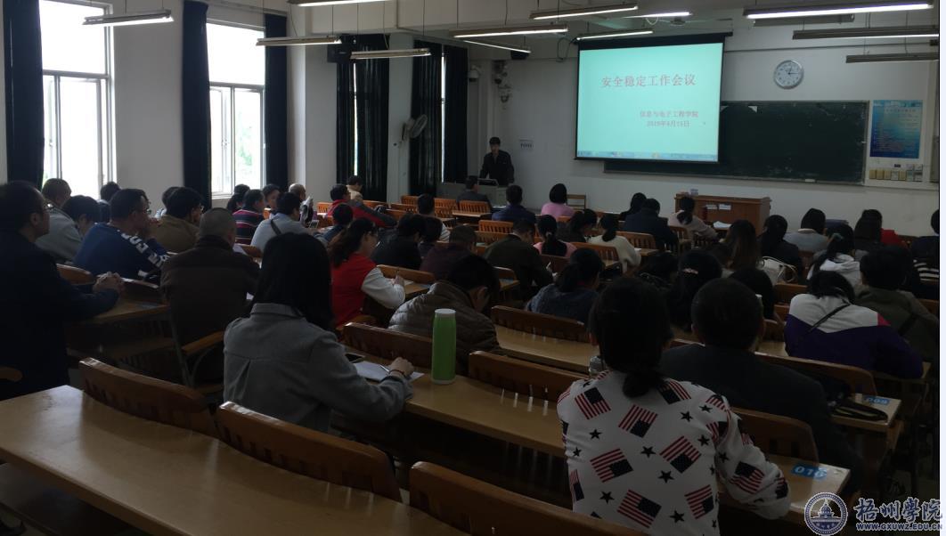 | 4月15日下午,信息与电子工程学院在S-202教室召开2018年安全稳定工作会议,会议由信电学院党委书记谭伟明主持,该院全体教职工参加会议。