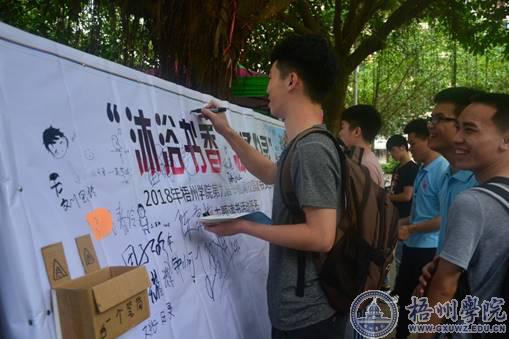 4月23日世界读书日,为激发我校大学生的读书热情,学校图书馆、机化学院在A4路口联合举办了2018年梧州学院第九届书香满校园文化节活动。