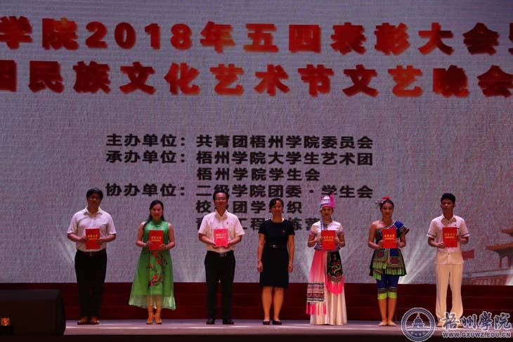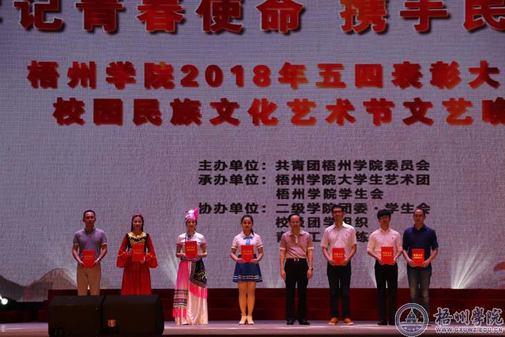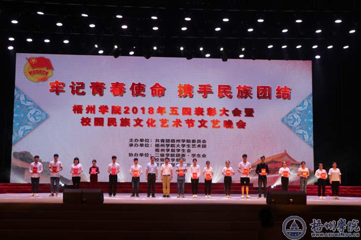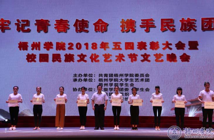 晚会上,学校对2017年度优秀团干部、优秀共青团员、优秀青年志愿者、宣传积极分子、文艺积极分子和社团活动积极分子等近1000名先进个人、21个先进集体以及在全国、全区第五届大学生大学生艺术展演中获奖的学生和老师进行了表彰。出席晚会的领导为获表彰的集体和个人代表进行了颁奖。