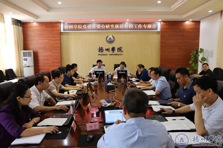 会议审议通过了《梧州学院创建自治区级“依法治校示范校”活动实施方案》,决定从即日起在我校全面启动自治区级“依法治校示范校”的创建工作。