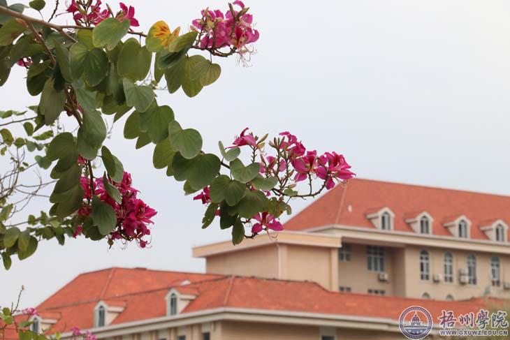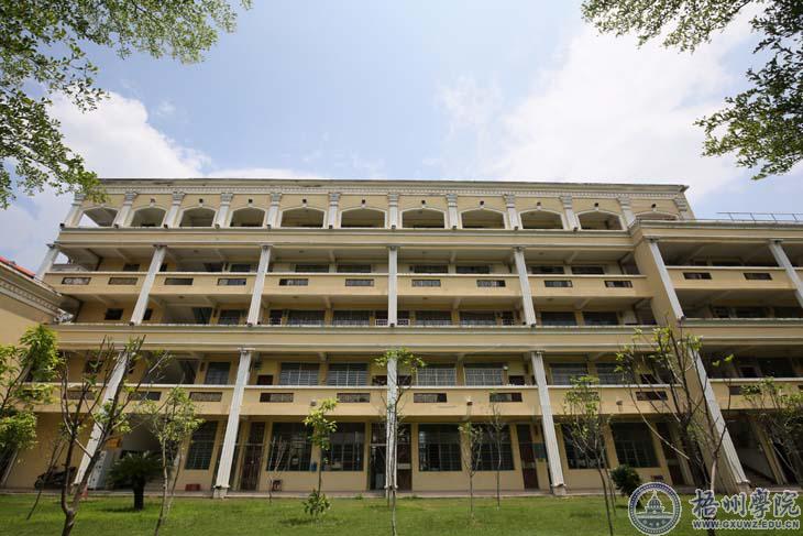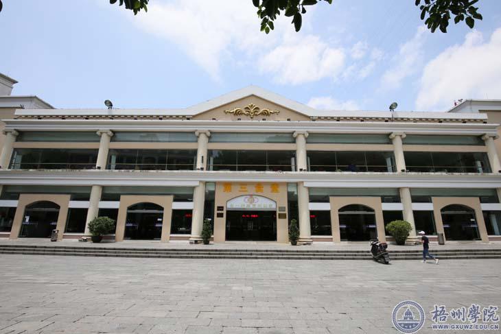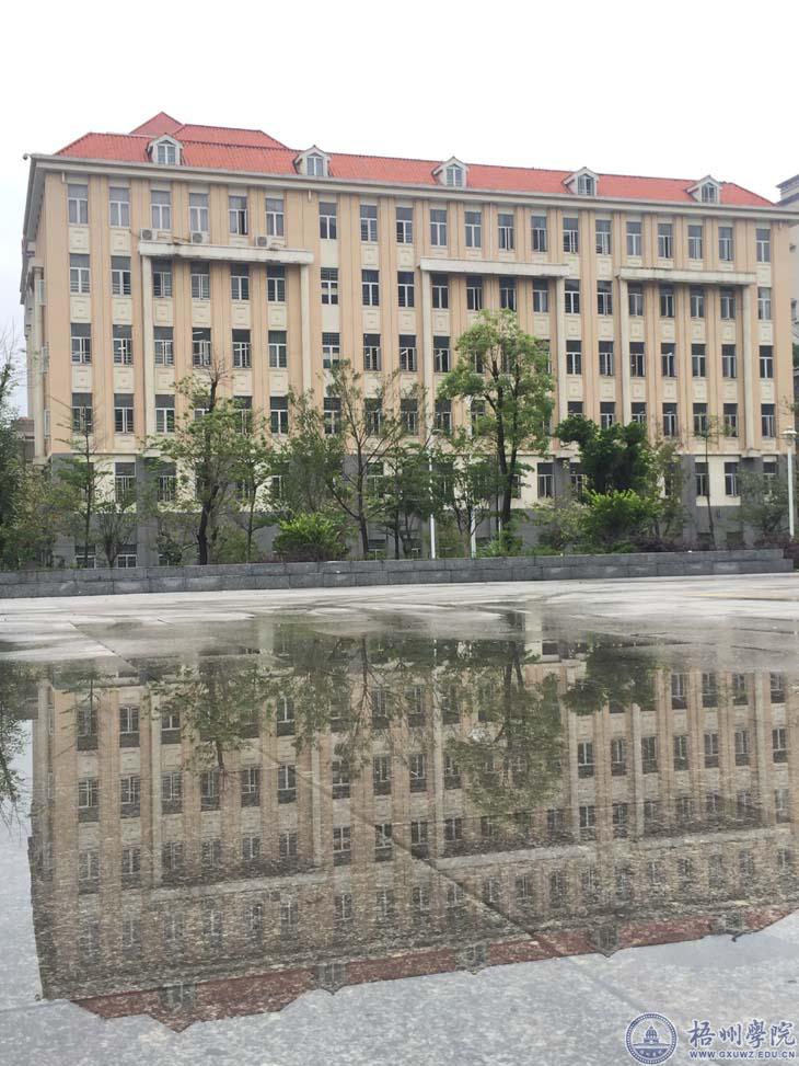 雨水将梧院的建筑冲刷了一遍,雨过天晴,明理楼、图书馆、食堂、宿舍楼在绿荫的陪衬下显得精神抖擞。