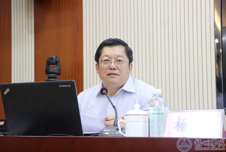 对于坚定文化自信,凝聚奋进力量,杨奔认为党的十八大提出的“道路自信、理论自信、制度自信、文化自信”四个自信中,文化自信支撑并渗透在其他三个自信中,它更基础、更广泛、更深厚。文化是人各项活动里面的基因,是我们的精神家园,若能把文化自信内化于心,就有了稳定性和长期性,将会影响深远。他说:“校园文化是润物细无声的,要加强校园文化建设,讲好梧院故事。”学校领导应该带头支持我校的文化建设。