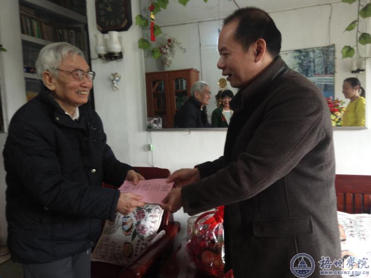 5月14日下午,学校副校长林基明和人事处的工作人员来到许柏龄教授家中,为即将迎来97岁生日的许老送上生日的祝福。林基明亲切询问了许老的身体状况,叮嘱他要保重身体,并衷心感谢他为学校建设发展做出的贡献。
