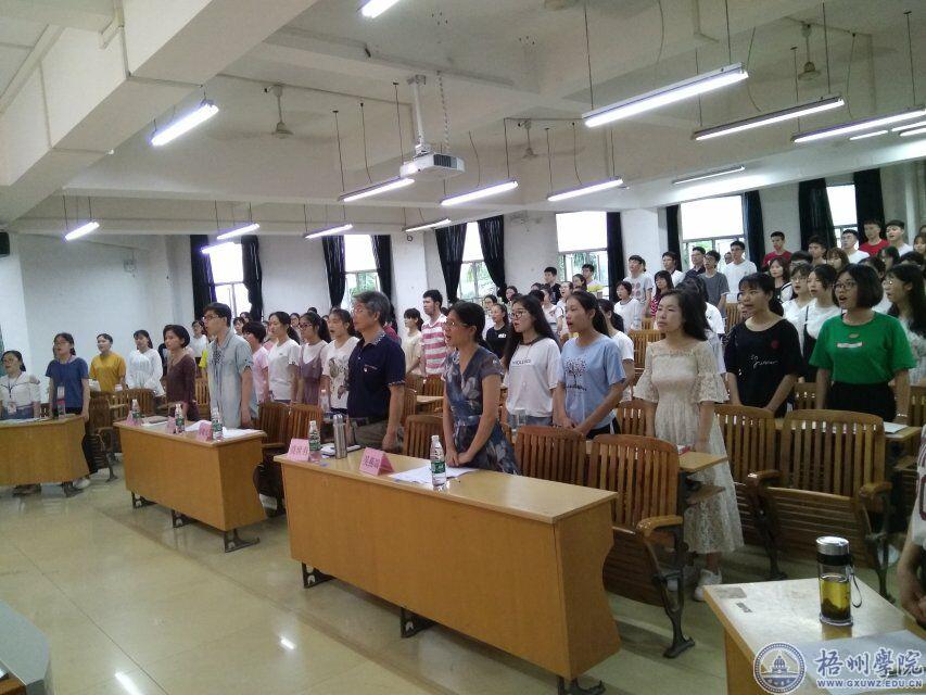 外国语学院党委书记莫世有、信电学院党委副书记吴燕端,三个学院的学生党支部书记及本期党校学员120人参加开班仪式。会议由培训班班主任蔡敏仪主持。开班典礼在庄严的《国歌》声中拉开帷幕。