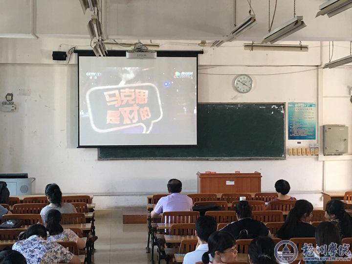 | 为纪念马克思诞辰200周年,学习马克思的光辉事迹和崇高品质,感受马克思主义的科学力量和真理光芒,5月23日下午,商学院组织全体教职工利用政治理论学习时间学习了《让马克思主义永葆生命力》,并观看电视理论对话节目《马克思是对的》。