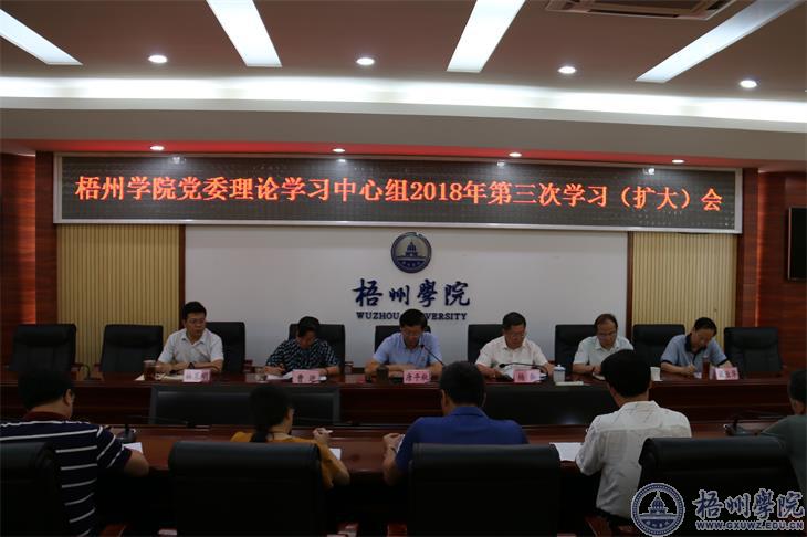 5月24日上午,学校党委理论学习中心组2018年第三次专题学习(扩大)会在明理楼8楼第1会议室召开。学校领导唐平秋、杨奔、曹迎、玉振明、林基明、梁业华,校党委中心组其他成员及学校中层正职领导参加学习会,会议由校党委书记唐平秋主持。