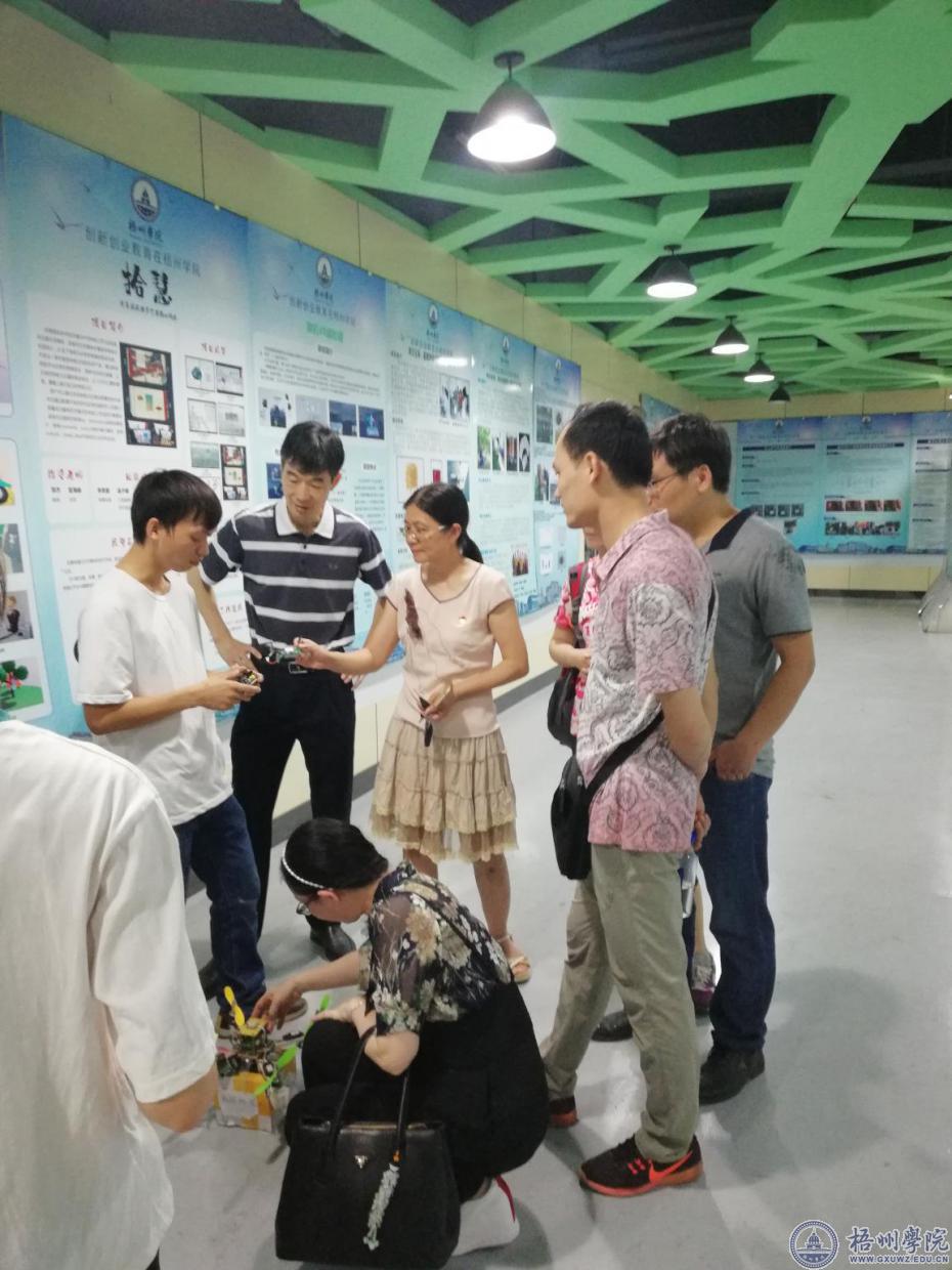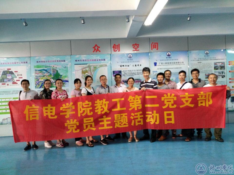 5月26日,信电学院教工第二支部5月“党员活动日”活动到大学生发展中心参观指导大学生创新创业成果展。2018年梧州学院第三届大学生创新创业活动路演比赛正在进行,支部书记姚高华老师介绍了信电学院大创项目的相关立项情况,支部党员参观了大创项目成果展,对信电学院参展项目存在的问题和不足提出了宝贵的意见。