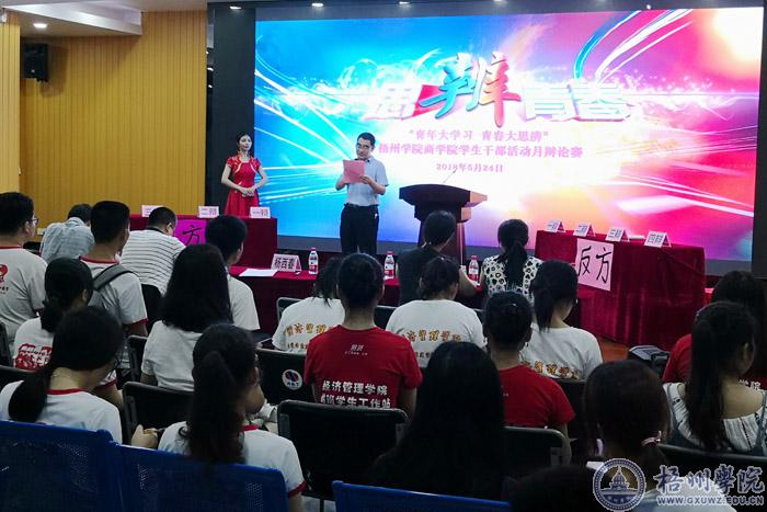 商学院团委负责人罗程飞、教师张晓磊,辅导员代表甘霞、彭桂英、钟懿博出席辩论赛。商学院团委·学生会、青年志愿者分会、大学生党建服务中心、易班学生工作站、以及16、17级班级干部代表共200余人观看本次辩论赛。