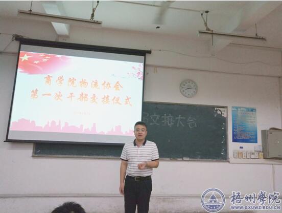 6月8日晚,商学院物流协会在教学楼S402教室举行了第一次换届大会暨交接仪式。物流管理专业教研室主任张晓磊及乐小兵、王学良、梁尹杰等三位物流专业教师,商学院物流协会全体会员和协会新老干部成员共100多人参加此次大会。