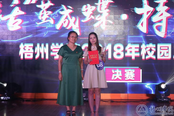 经过紧张的比拼,最终7号黄献玉获得本次大赛的冠军,5号张媚获得亚军及最佳台风奖,8号邓树萍获得季军。另外,主持人董一平继去年主持人大赛获得季军至今,参与学校大大小小主持活动共32场,次数在去年8位参与决赛的选手中位居高位,获得了2018年金话筒奖。出席决赛的领导为获奖的同学进行了颁奖。