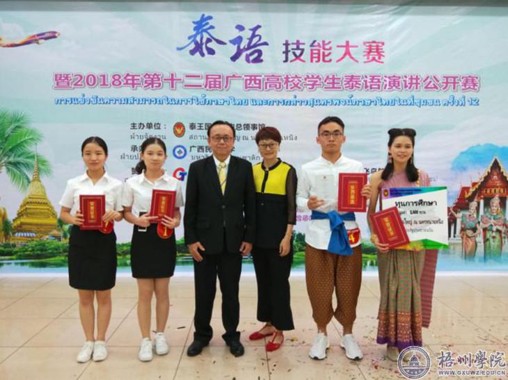参赛选手、指导老师与泰国驻南宁总领事馆总领事蔡乐·蓬蒂窝拉卫先生合影