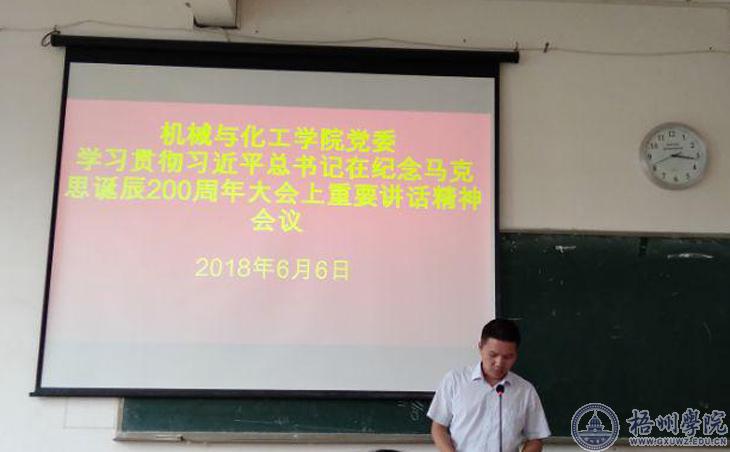6月6日下午,机械与化工学院党委组织全体师生党员学习贯彻习近平总书记在纪念马克思诞辰200周年大会上的重要讲话精神。