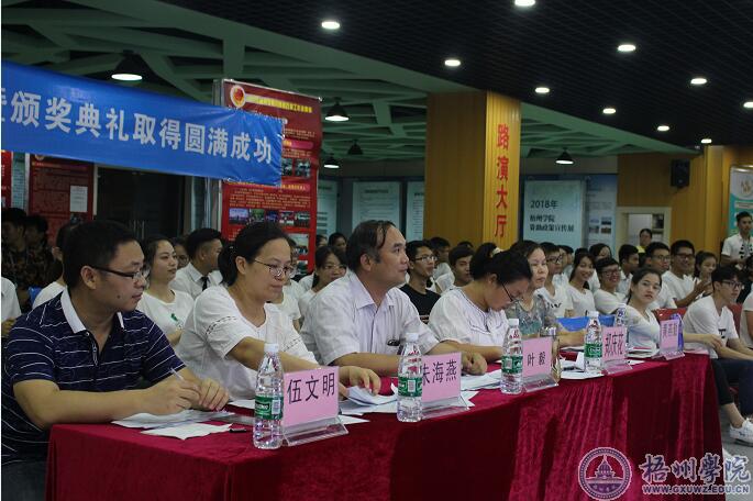 | 6月13日下午,商学院在体育馆大学生发展中心举行了“玺膳尚”杯第四届O2O电商创业大赛答辩赛暨颁奖典礼,商学院副院长叶毅、电子商务教研室主任黄燕勤以及郑庆花、伍文明、朱海燕等5位教师担任此次大赛的评委,18个参赛队依次参加角逐。