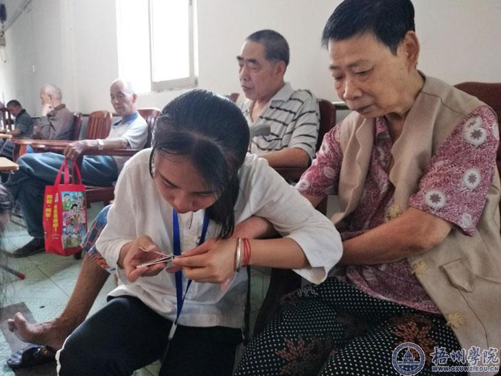 上午9时,志愿者去到敬老院看望老人家,志愿者们主动帮老人家打扫卫生、整理内务,帮他们剪指甲,空闲之余陪他们聊天。志愿者们还用自己的真情给老人家送上了一份很好的父亲节礼物——一起动手为老人家做一顿饺子宴,还给行动不便的老人家喂饺子。饺子虽小,但包满了浓浓的爱,爱不需要有多大,给他们简单的陪伴,给他们做一顿可口的饭菜,这便是志愿者们对老人家的大爱,希望通过我们微薄的力量,让敬老院的老人家感受到年轻人的孝心和社会的温暖。