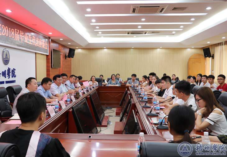6月25日下午,学校在明理楼第一会议室召开“书记有约”2018届毕业生代表座谈会,来自11个二级学院的31名毕业生代表参加了座谈会,学校党委书记唐平秋主持会议。