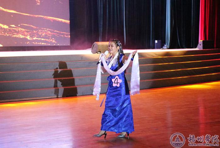 才艺展示环节,李小莉带来动感火辣的《l like it》舞蹈点燃了全场的气氛。来自西藏的班玛措同学用空灵的歌声为大家带来一首藏族歌曲《迎酒欢歌》,并为现场的领导送上了“哈达”,呈现了浓浓的藏族风情。左婷玉带来的性感伦巴舞蹈《喜欢你》,动听的旋律,自信、性感、优雅的舞姿,令现场的观众惊叹不已。嘉宾梁誉老师带来的一首《you raise me up》余音绕梁,浑厚的歌声,优美的旋律,令人陶醉,更是把全场的氛围推至高潮。
